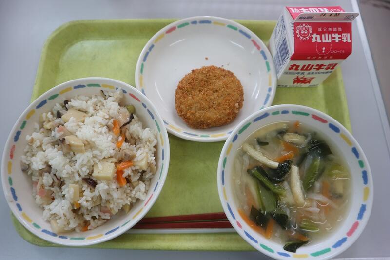 筑前煮は、今の福岡県のことで、代表的な郷土料理です。かみごたえのある食材が多かったので、よくかむことを生徒へ伝えました。よくかむと満腹感が出て食べ過ぎを防いだり、味覚の発達につながったりなど、良いことがたくさんあります。