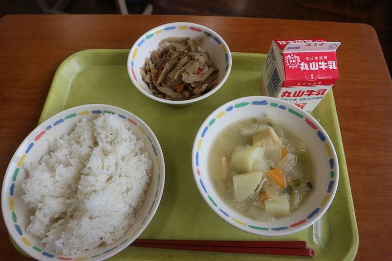 筑前煮は、今の福岡県のことで、代表的な郷土料理です。かみごたえのある食材が多かったので、よくかむことを生徒へ伝えました。よくかむと満腹感が出て食べ過ぎを防いだり、味覚の発達につながったりなど、良いことがたくさんあります。