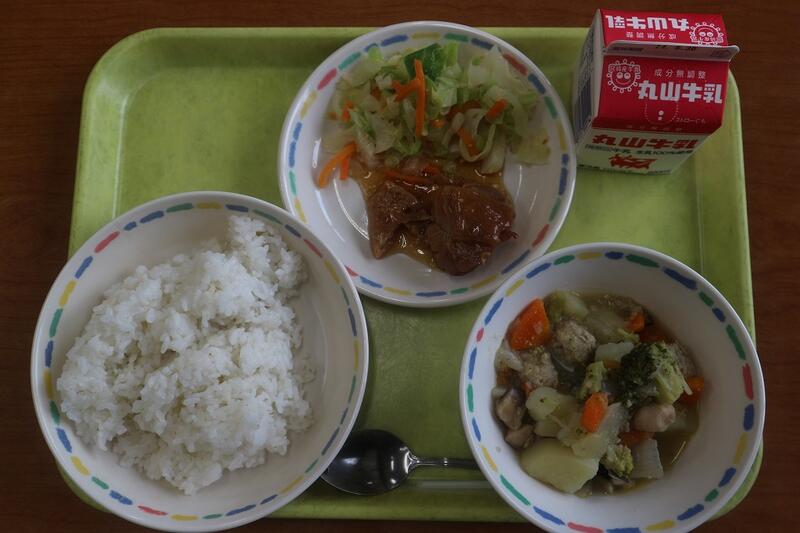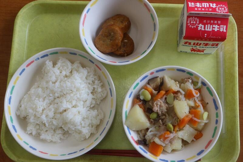 筑前煮は、今の福岡県のことで、代表的な郷土料理です。かみごたえのある食材が多かったので、よくかむことを生徒へ伝えました。よくかむと満腹感が出て食べ過ぎを防いだり、味覚の発達につながったりなど、良いことがたくさんあります。
