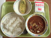 ひき肉と豆のカレーには、ひよこ豆を使いました。ひよこ豆を含む豆類には、体の筋肉や血を作ったり、体を丈夫にするたんぱく質や、お腹の中をきれいにする働きの食物繊維を多く含んでいます。給食でも豆類をよく使っています。