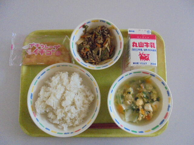 給食当番でデザートをとりに来た生徒は、「クレープがある♪」と大変嬉しそうにしていました。