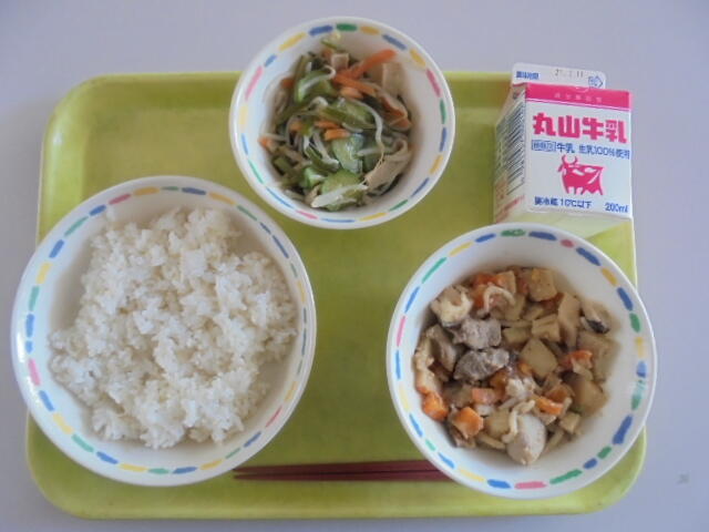 筑前煮は、今の福岡県のことで、代表的な郷土料理です。かみごたえのある食材が多かったので、よくかむことを生徒へ伝えました。よくかむと満腹感が出て食べ過ぎを防いだり、味覚の発達につながったりなど、良いことがたくさんあります。