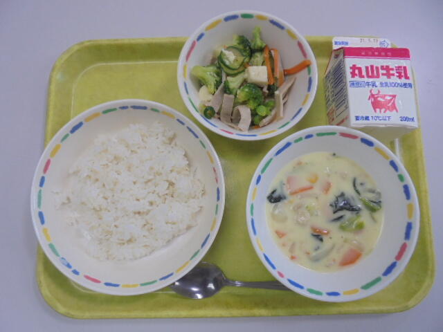 旬のチンゲンサイをクリーム煮にしました。貝柱や鶏肉なども入れておいしく仕上げました。生徒たちもよく食べていました。