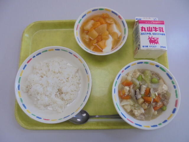 また、小さいおかずはフルーツ杏仁だったので、今日は食べ終わるのが早かったです。