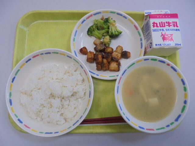 今日は、県産養殖かんぱちを使った唐揚げでした。