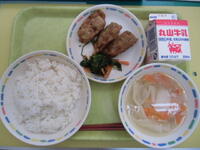 ひき肉と豆のカレーには、ひよこ豆を使いました。ひよこ豆を含む豆類には、体の筋肉や血を作ったり、体を丈夫にするたんぱく質や、お腹の中をきれいにする働きの食物繊維を多く含んでいます。給食でも豆類をよく使っています。