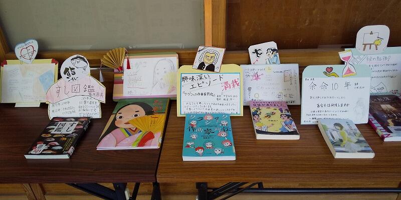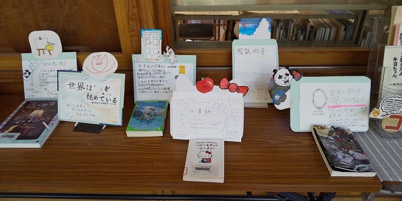 図書室廊下の生徒たちの本の紹介コーナーです・・・・
