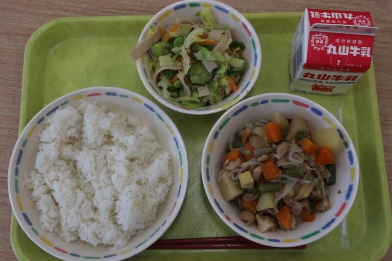 筑前煮は、今の福岡県のことで、代表的な郷土料理です。かみごたえのある食材が多かったので、よくかむことを生徒へ伝えました。よくかむと満腹感が出て食べ過ぎを防いだり、味覚の発達につながったりなど、良いことがたくさんあります。