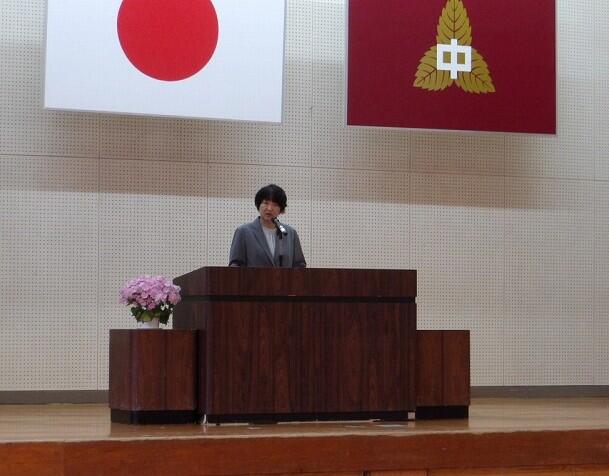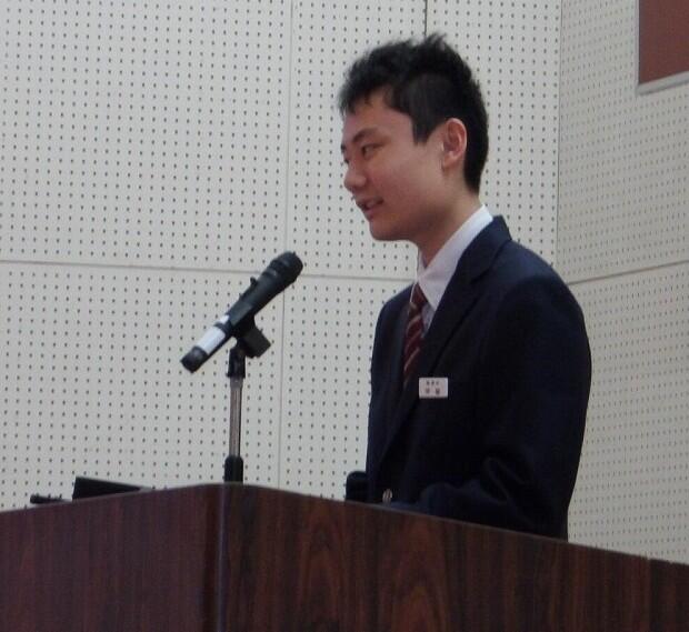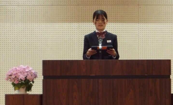 各学年の代表者に修了証が授与されたあと、3学期の反省を2名の生徒が発表しました。心身ともに成長が見られた1年間でした。