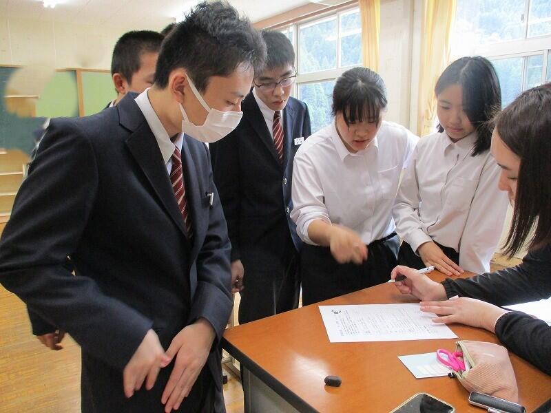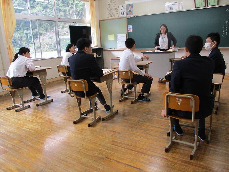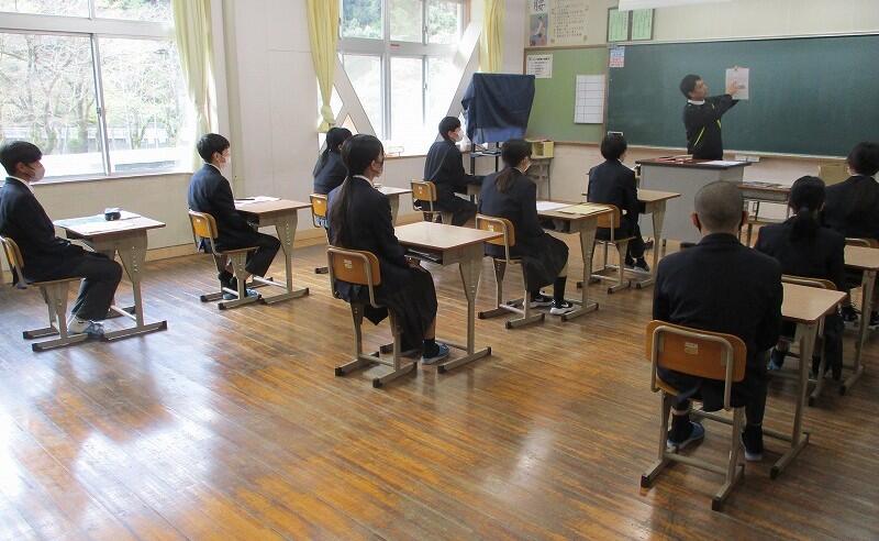 まず、卒業生一人一人に、校長より卒業証書を手渡しました。校長の式辞、在校生代表生徒が送辞を述べたあと、卒業生代表生徒が答辞を述べました。答辞では、3年間の思い出と故郷への思い、そしてこれからの力強いメッセージを伝えてくれました。いつも前を向いて、11名で協力し合い、後輩たちを引っ張りながら、学校生活に取り組む姿は大変立派でした。笑顔で挨拶ができ、他者への思いやりにあふれ、明るい学校生活を送った3年生11名の生徒が、清々しい表情で本校を巣立っていきました。