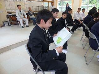 4月24日(水)に、元UMKテレビ宮崎のアナウンサー「高橋巨典」さんが、諸塚中学校に来られました。実は、巨典さんは、昨年の5月にも本校に来られています。その時は、諸中の体育館を会場に「大声選手権大会in諸塚」が開催され、その様子が県内に生中継されました。今回は、村内の各学校での読み聞かせ活動のために来校されました。当日は、読み聞かせはもとより、国語の教科書に掲載されている谷川俊太郎の詩の朗読も行ってくださいました。また、コミュニケーションの在り方として、自分の考えを伝えるだけでは一方的になるので、相手の話を聴いて、相手を観察することの大切さを話されました。そして、「声は出すものではなく、届けるもの」と書かれた色紙をいただきました。50分という時間があっという間に終わり、生徒一人ひとりに巨典さんからのメッセージが届いたことと思います。とても素敵な時間をありがとうございました。