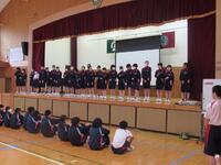 全校ドッジボールをした後、1・2年生一人一人が3年生に向けて感謝のメッセージを述べました。3年生が涙する場面もあり、卒業を間近に控え、思い出深い会になりました。