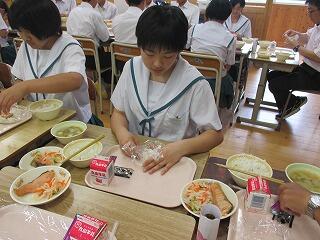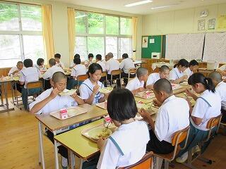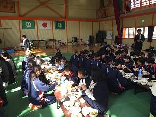 はじめは緊張していたのか、黙々と食べていましたが給食が終わる頃には大盛り上がりになっていたところもあったようです。