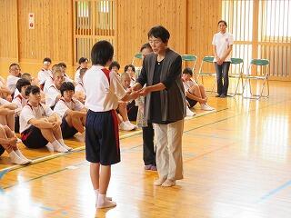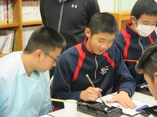 交流授業では3年生とともに剣道と書道の授業を受けました。みんな笑顔で、良い思い出になったのではないかと思います。