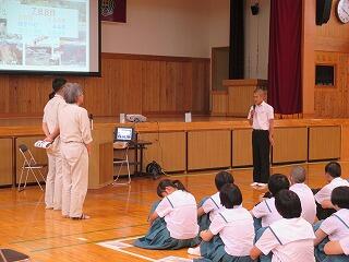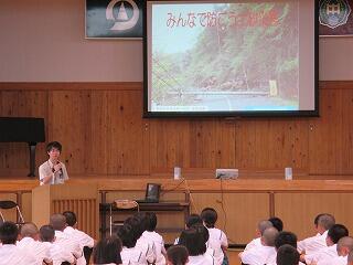 日向土木事務所から3名の講師の先生方に来ていただき、土砂災害防止教室が開かれました。