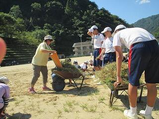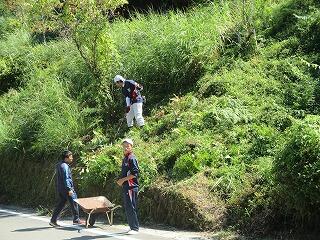 特に保護者の皆様は、草刈機をご持参いただき、急な斜面でも、とても手際よく作業をして頂きました。