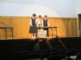 国語科・英語科の暗唱や弁論発表に始まり、1年生は椎葉に伝わる恋物語を1年生らしくアレンジして発表しました。