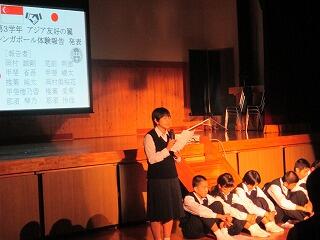 3年生は自分たちで台本を書いた劇「MyDreamMyWay」とアジア友好の翼で訪問したシンガポールについての発表をしました。
