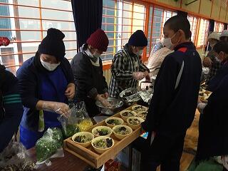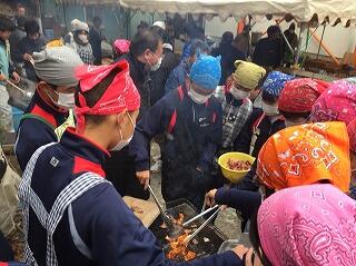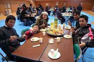 お父さん方はイノシシの肉を朝から焼いてくださいました。お母さん方の手際のよさに感動しました。椎葉中の生徒にとっても大変貴重な経験になったと思います。