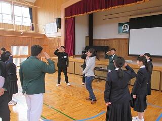 8日(金)は椎葉中学校に来校し、椎中生が出迎えました。歓迎行事では、校長先生と3年生代表が英語でスピーチし、レクレーションでは生徒会主催で、ジェスチャーゲームや
