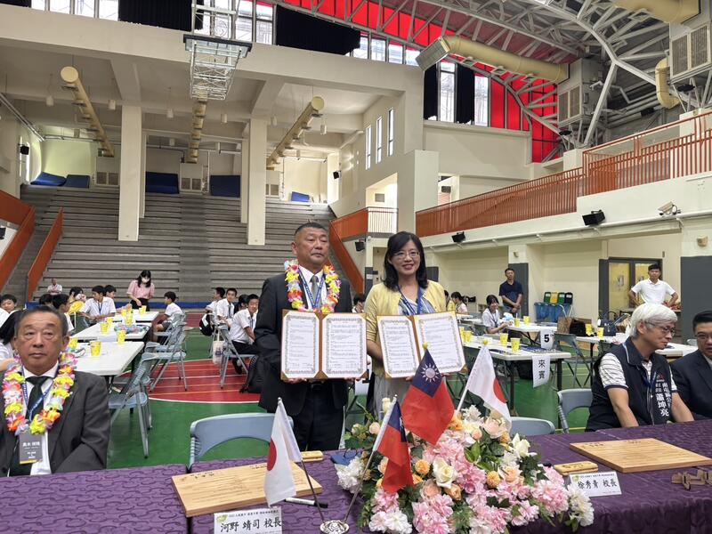 台中市大墩国民中学へ到着。熱烈な歓迎をされました。