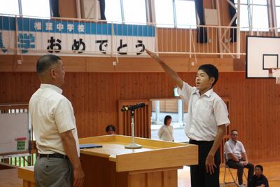 激励式では、男女ともに元気よく抱負を話してくれました。