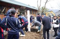 3年生は卒業記念植樹を行いました。今年度は古希を迎えられた方々からいただいた苗木を含む合計4本を植樹しました。