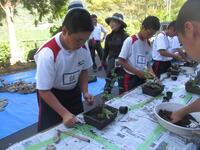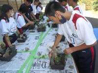 また、1年生は「ものづくり体験教室」が行われ、16作品の美しい盆景を造園しました。