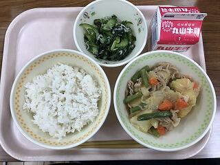 久しぶりの更新です。すみません。今日は肉じゃがでした。じゃがいもにもしっかりと味がしみこんでいましたね。共同調理場では炒め物や煮物などの料理は「ティルティングパン」という機械を使います。釜とは違い、横に広い作りになっているので、調味料が全体に行き渡りやすく、味付けがよく仕上がります。焦げたりするのが心配ですが、調理員さんの腕前がすばらしいので、いつもきれいにできあがります。本当にいつもおいしくいただけるのでありがたいですね!