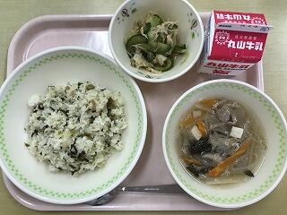 今日は高菜チャーハンということで楽しみにしてくれていた人も多いのではないでしょうか。宮崎県産のきざみ高菜を使用し、ベーコン、ちりめん、玉ねぎも入って具だくさんのおいしいチャーハンでした。今日で8月最後の給食でした。来週から9月ですね。まだ暑い日が続きますが、しっかりと給食を食べて暑い時期を乗り切りましょう。