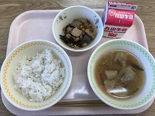 今日は五目豆ということで、大豆が苦手な子供たちにとってはちょっと嫌な給食だったかもしれませんが、「おいしい」と言って食べてくれる子供たちも多く、ほとんど残菜もなく食べてくれました。ご家庭で豆を食べる機会が減っている今の世の中、せめて給食ではしっかりと食べて欲しいですね。