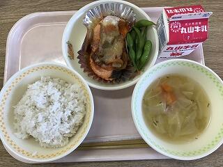 今日は「魚のピザソース焼き」でした。今日使った魚は鮭でした。鮭に玉ねぎ、ピーマン、マッシュルーム、ピザソース、チーズをのせてオーブンで焼きました。鮭は色々な料理に合い、脂がのっておいしいので給食でも使いやすい魚です。いつも残さず食べてくださりありがとうございます。