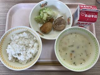 今日の「鶏肉のバーベキューソース」は、醤油、酒、砂糖、レモン果汁、おろしにんにく、おろししょうがを合わせたタレにつけ込んで、スチームコンベクションオーブンで焼きました。調理場の外までにんにくのいい香りがして食欲をそそりましたね。ごはんのおかずになる、おいしい1品でした。