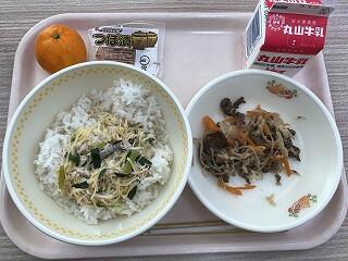 今日は意外ですが給食の人気メニュー、「鶏飯」でした。椎葉の子どもたちはこの給食で出る鶏飯が大好きなようで、「次は鶏飯いつ出るんですか?」というリクエストもあるほどです。本来の冷たいスープではありませんが、温かくてもおいしいとみんな食べてくれます。奄美大島の郷土料理です。お味はいかがだったでしょうか。