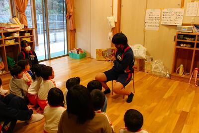 3年生が椎葉中央保育所で保育実習を行いました。家庭科の時間に作成したおもちゃで遊んだり、絵本の読み聞かせをしたりしました。楽しみながらも学ぶことがたくさんありました。