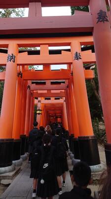 千本鳥居をくぐり抜け、おもかる石も持ち上げました。この後、宿に移動です。