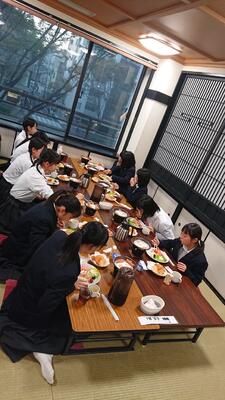 自主研修のあとの夕食は、しっかり学んだ分、よく食べました。明日は最終日。元気に過ごすためにもしっかり寝ます。