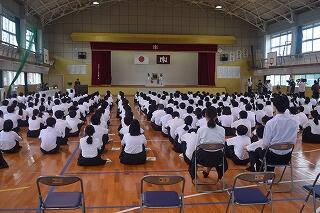 本日は2学期始業の日でした。元気な様子で登校する姿が印象的でした。始業式では4名の代表の生徒が2学期の抱負を発表しました。「定期テスト、合唱コンクールをみんなで頑張る。忘れ物をなくす。あいさつを日頃から意識する。」「語先後礼のあいさつを徹底し、学校だけでなく地域でも実践する。授業態度を改善し互いを認め合う雰囲気を大切にする。凡事徹底し自律する。」「受験生としての自覚を持ち、当たり前の事を当たり前にする。クラスで一致団結し、後輩の心に残るような合唱にする。」「礼儀を重んじる学校、地域に貢献する学校、いじめのない学校を継続して目指す。よい傾向にあるのでみんなで頑張ろう。」素晴らしい抱負です。