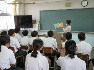 生徒活動の時間に読み聞かせを実施しました。今日は3名のボランティアの方々が3年生徒に実施していただきました。他の1・2年生は、教室で各自読書タイムです。