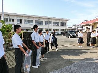 今日は月に1度のクリーン・ウォークディ(生徒会行事)です。登校時に通学路のゴミ拾いを実施しました。多くの生徒が参加していました。