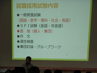 また、講師の方のニュージーランド留学などの様々な経験から、現在の仕事に就くまでの過程を話していただき、仕事選びをするために「さまざまなことに興味をもつこと」「何にでもおもいきって挑戦すること」などが大切であるという話をされました。生徒自身も将来のことについて考える大変よい機会になりました。