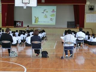 3時間目(3年生)、4時間目(2年生)、5時間(2年生)に、弁護士を招いて「情報モラルについて」学習しました。