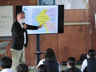 4校時に3年生を対象に国際理解教育を実施しました。JICA(国際協力機構)から講師に来ていただきました。