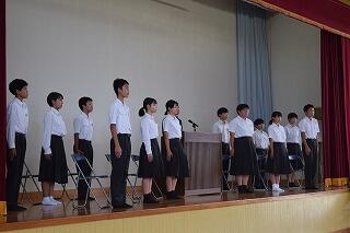9月22日(金)に延岡市総合文化センターで実施される「延岡市英語暗唱弁論大会」のリハーサルを昼休み時間に実施しました。会場は職員室です。暗唱の部には1年生が「"The Three Pigs"」弁論の部には3年生が「"The Power Expression"」を発表します。2人とも大変緊張していたようですが、堂々とした発表でした。職員からも大きな拍手が聞かれました。