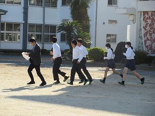 今朝は、月に一度のクリーンウォークディでした。この活動は、延岡中学校に代々続く(7年間)伝統の生徒会活動です。朝の時間に、登下校道路のゴミを拾いながら安全に気を付けて登校します。生徒会が前日に放送で呼びかけた成果もあり、多くの生徒がゴミを拾って登校しました。活動の最後は、生徒会によるゴミの分別作業です。新旧生徒会が混ざっての活動でした。先輩生徒会役員が後輩生徒会役員に丁寧に指導している姿も見られました。