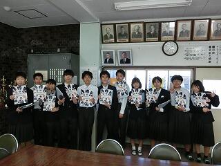 1年かかけて取り組んだ防災・減災調査の結果をまとめた冊子「地域防災・減災BOOK」を学校運営協議会の委員でもある区長さんに代表で受け取っていただきました。全部で350部印刷しましたが、そのうち230部を各地区の回覧板をとおして全地域の方々にも見ていただきます。生徒会を中心に編集した冊子を是非見てください。