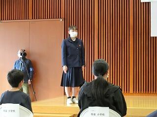 スタートは、合唱コンクールです。学年が上がる毎にレベルも上がっていきました。3年生は、後輩のよき見本となるすばらしい合唱。1・2年生に「あんな合唱を来年は自分達もしてみたい!!」と思わせる内容でした。英語暗唱・弁論は、堂々とした立派な発表でした。総合的な学習の時間の発表は、各学年とも工夫されたものになっていました。吹奏楽部演奏は、楽しい、リズミカルな演奏で、聞く人も心おどる演奏。延岡中の文化活動の成果を十分発揮できた1日になりました。
