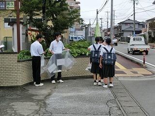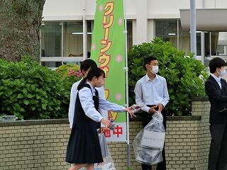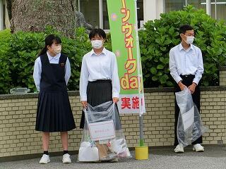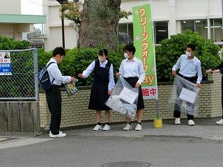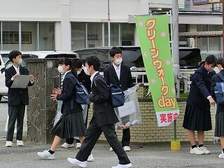毎月1回実施している生徒会行事「クリーンウォークディ」です。朝の登校時間の通学路のゴミ拾い活動です。