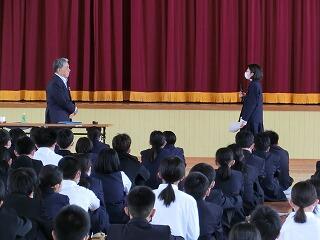 まず最初に、令和5年度延岡市自転車安全推進校の指定証を生徒会代表が受け取りました。