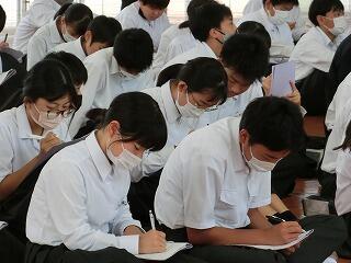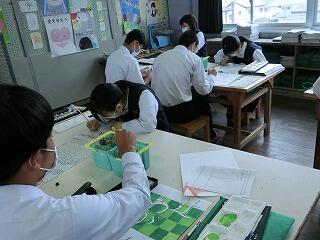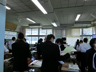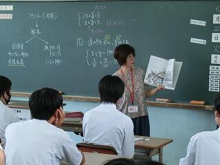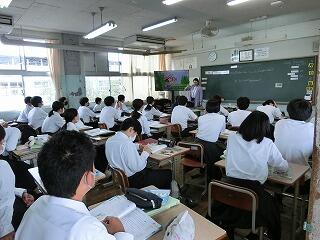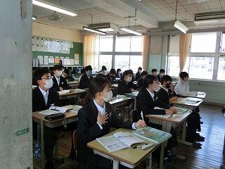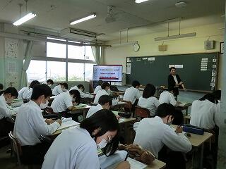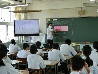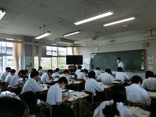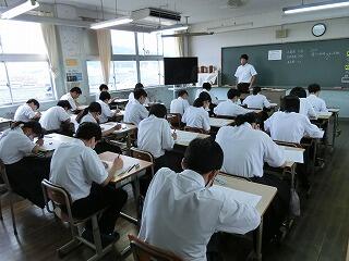 1年生も入学して1か月が過ぎようとしています。少しずつ学校の生活にも慣れてきました。他学年の生徒たちも授業に集中しています。3年の授業では、全員が手を挙げて答えようとしています。